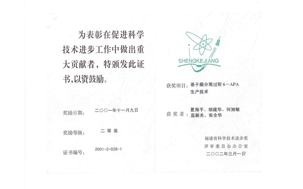 获“福建省科技进步二等奖”(基于进分离技术的维生素C生产工艺)。